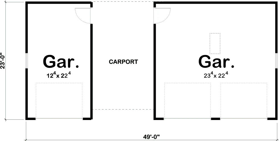 Measuring 49 feet wide and 23 feet deep, this garage offers ample space without overwhelming your property. The building height reaches 18 feet, providing additional vertical storage options. With a generous first-floor ceiling height of 9 feet, this garage plan is perfect for both practical functionality and convenient organization of your belongings.