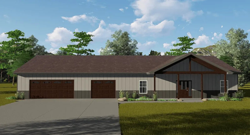 Convenience is key with a dedicated first-floor laundry room and a mudroom that adds practicality to daily living. The covered front porch invites you to enjoy the outdoors, while the fireplace in the great room creates a warm and cozy atmosphere. This home also features an expansive 1,907 sq ft garage with three bays, providing plenty of space for vehicles and additional storage. Ideal for families or those who appreciate room to grow, this house plan combines style, comfort, and practicality effortlessly.