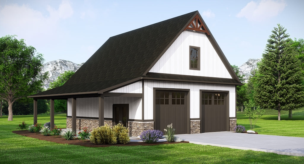 This detached garage plan is perfect for those seeking a combination of functional vehicle storage and comfortable living space. Here's an overview of its standout features: