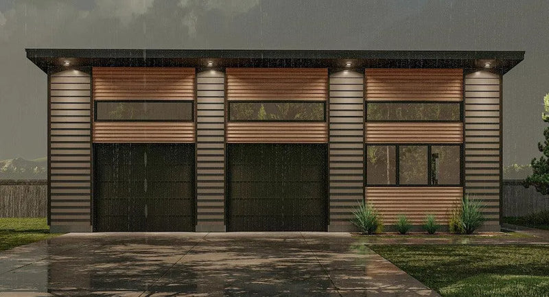 This spacious garage plan encompasses 1,271 sq ft, designed to accommodate two vehicles with ease. Featuring a practical front load design, it combines functionality and accessibility, making it a great addition to any property. The sturdy 2x6 wall framing ensures durability, while the slab foundation provides a solid base for everyday use.
