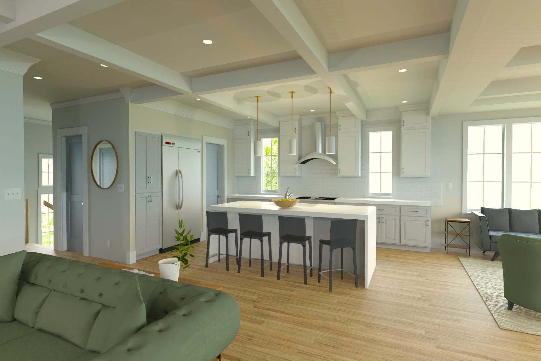 This beautifully designed 3,089 sq ft coastal home offers a perfect blend of elegance and practicality. Built on a durable pier foundation, it provides elevated living with a 3.5:12 roof pitch and sturdy 2x6 wall framing for lasting strength. The ground floor features a spacious 1,400 sq ft side-load garage, offering ample storage and parking space.
