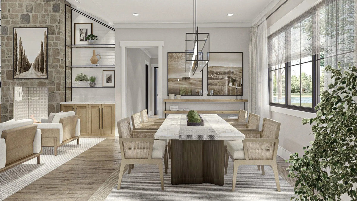 The first-floor owner's suite offers a private retreat, while the convenient first-floor laundry and mudroom add to the home's practicality. The outdoor fireplace enhances the living experience, providing a cozy spot for relaxation. With a front-loaded two-car garage and thoughtful storage solutions throughout, this home is perfectly equipped to meet the needs of modern living.
