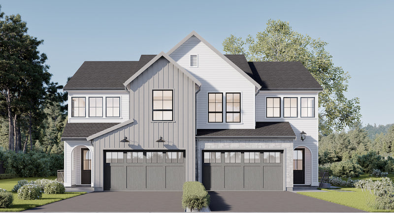 A front-load garage provides 762 total sq. ft. of space, comfortably accommodating 2 vehicles per unit. Built with a walkout basement foundation, this design allows for additional storage or living space if needed. The home is constructed with 2x6 wall framing and a 10:12 truss roof, ensuring durability and efficiency.