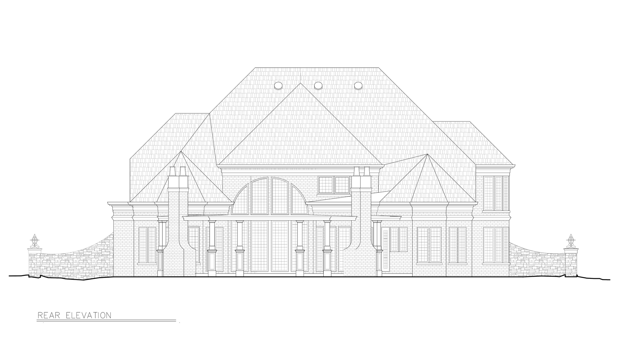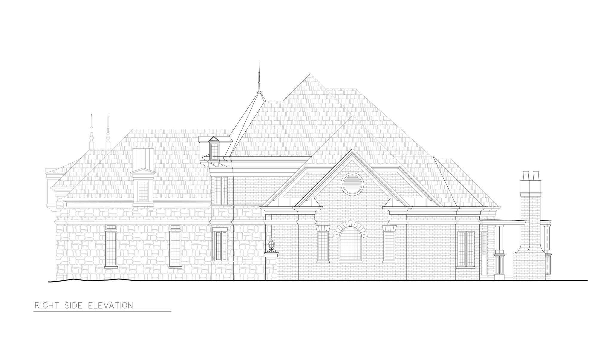 The Hennessey House is a Grand Home that captures anyone's attention with its tasteful use of brick and stone on an impressive exterior. The Hennessey House Plan poignantly offers a Castle like Grand Tower adorned by ornate windows, and a copper Steeple. The expansive Wing Walls add to the French & European feel.
