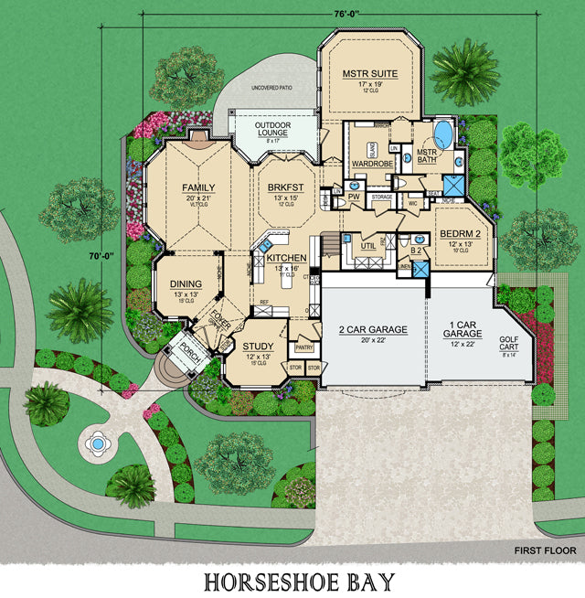 Measuring 76 feet wide and 70 feet deep, this thoughtfully designed home blends timeless architectural appeal with modern comfort, making it an ideal choice for luxurious yet practical living.