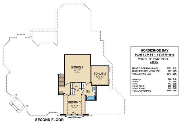 Upstairs, the 390 sq. ft. second floor includes additional living space, and a 441 sq. ft. bonus room offers endless possibilities for a playroom, media room, or guest suite.