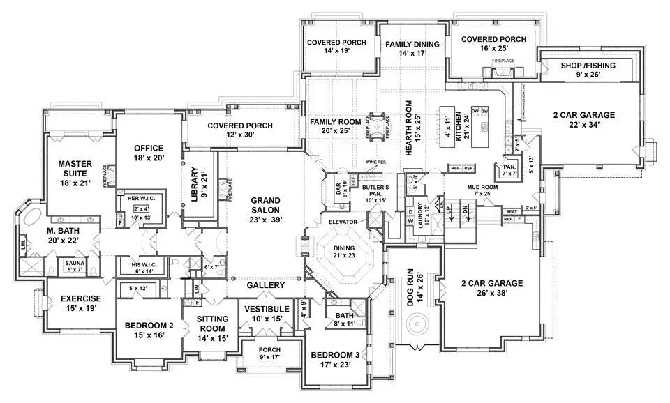 Spanning just under 10,000 square feet, this extraordinary waterfront two-story house plan is graced by soaring ceilings and wall-to-wall windows that capture panoramic scenes of nature beyond. A striking two-sided fireplace adds warmth to the family gathering areas and creates focal point from the sprawling kitchen.