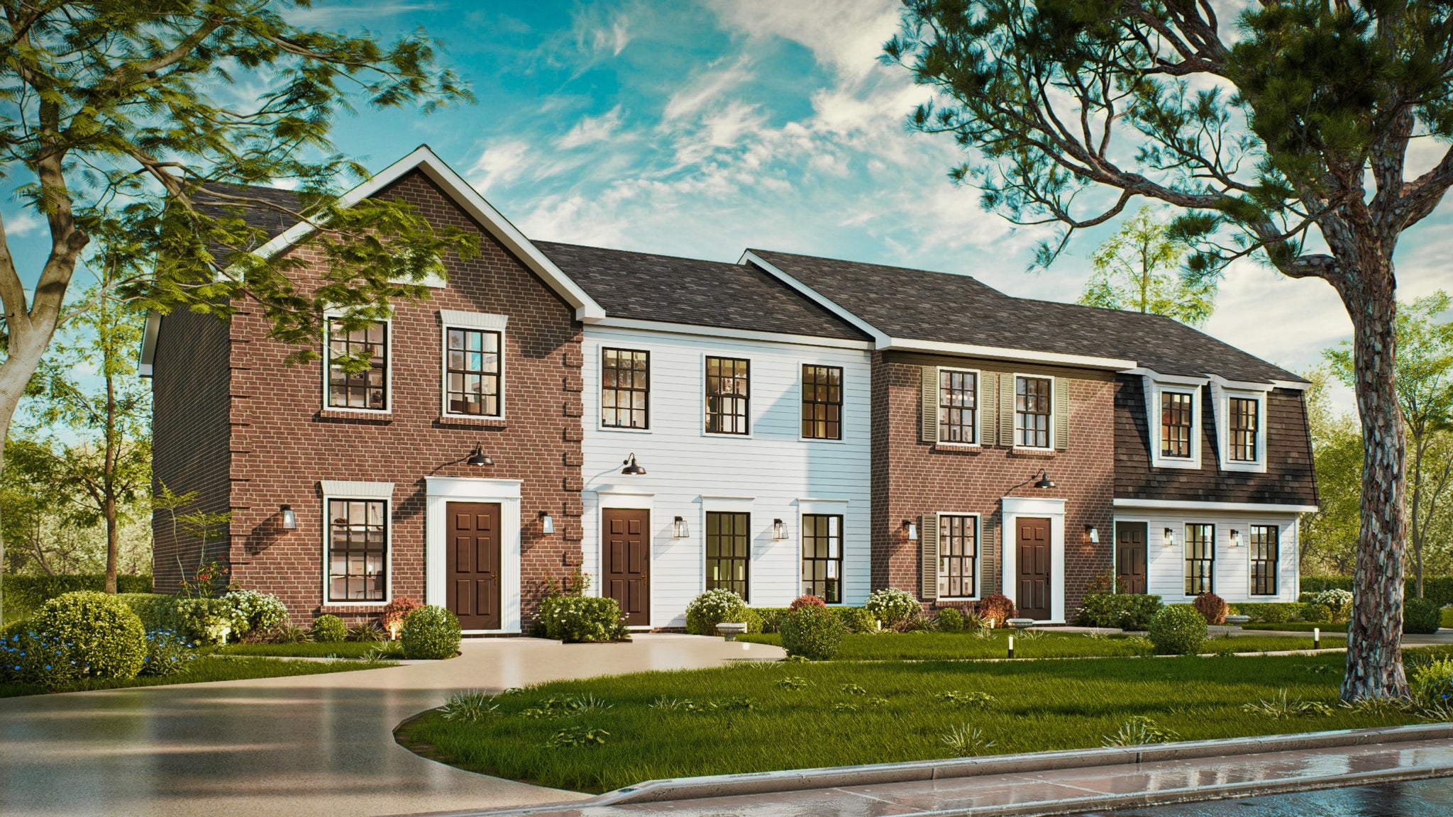 Each home includes 2 bedrooms, 1 full bath, and 1 half bath, with walk-in closets, second-floor laundry, and an open-concept layout ideal for modern living. Enjoy charming touches like front porches, rear decks, and exterior styles that alternate between brick and siding for architectural variety.