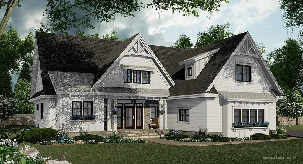 The elegant wood and stone façade of this 2046 sq ft Modern Farmhouse gives it loads of curb appeal! This home has 3 bedrooms, 2 full bathrooms and a ¾ bath, all conveniently located on one level. There are multiple garage options- 2 or 3 car and either front or side entry for all your storage needs. There is also a 361 sq ft optional bonus room.