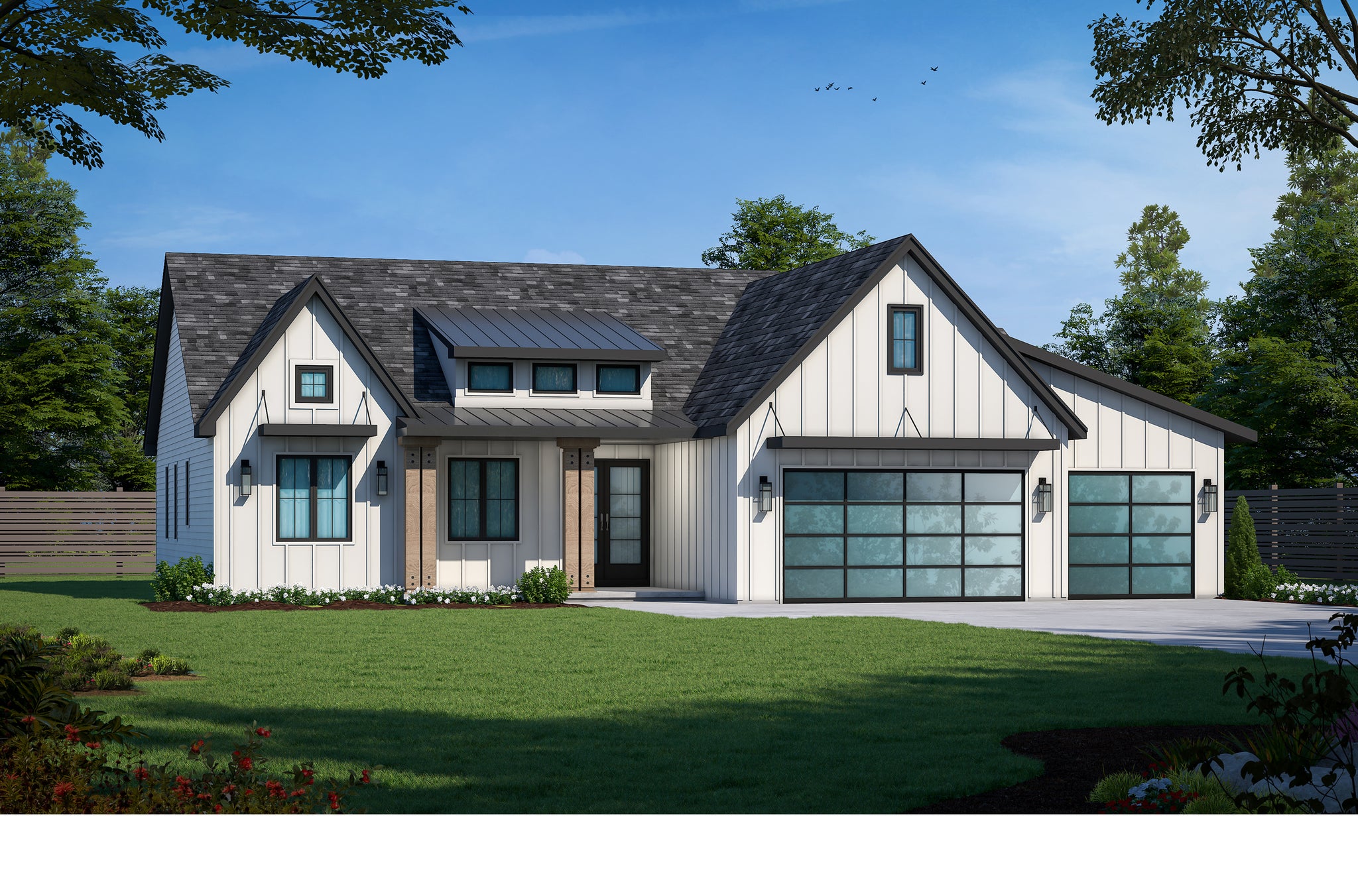 Both the front and back of the home are enhanced by inviting covered porches, perfect for relaxing or entertaining outdoors. A mudroom off the three-car front-load garage keeps daily life organized and tidy. Designed with a practical slab foundation and sturdy 2x6 wall framing, this home combines classic style with modern livability. Whether you're hosting gatherings or enjoying quiet evenings at home, this plan offers a versatile and welcoming environment.