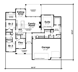 This beautifully designed one-story home offers 2,176 square feet of heated living space, thoughtfully arranged for comfort and convenience. With four bedrooms and two bathrooms, it features a split-bedroom layout that ensures privacy for the master suite. The first floor showcases 10-foot ceilings, a formal dining room, a large family room, a bright breakfast area, and a well-appointed kitchen with a spacious island. A flexible room near the entrance can serve as a home office, study, or even a playroom, adapting easily to your family's needs. The master suite is conveniently connected to the laundry room through the walk-in closet, adding an extra touch of functionality.