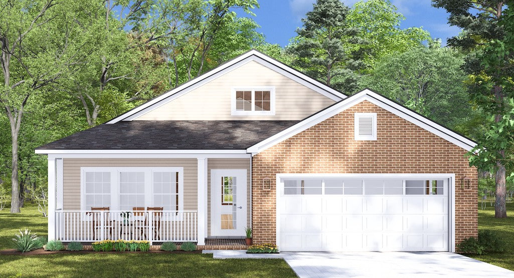 This 1,556 sq ft home is designed for comfort and convenience, featuring 3 bedrooms and 2 bathrooms. The first floor offers an open layout with a formal dining room, perfect for family meals and entertaining guests. The spacious kitchen includes a walk-in pantry for ample storage, while the laundry room is conveniently located on the first floor with direct access from the master suite for added convenience. The split bedroom design provides privacy between the master suite and the additional bedrooms. A mudroom helps keep the home organized, offering a practical spot for coats and shoes. Enjoy outdoor living with a 110 sq ft covered front porch and an 80 sq ft rear porch. The 440 sq ft garage accommodates 2 vehicles with a front-loading configuration. Built on a slab foundation with 2x4 wall framing, this home features a functional layout ideal for various lot sizes. With a width of 40 feet and a depth of 58'6", this home is perfect for modern living.