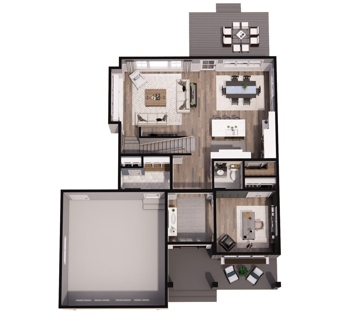 A complete set of working drawings delivered in digital PDF format. This option comes with a license to build ONE home and includes a copyright release for printing unlimited sets of plans and making modifications.