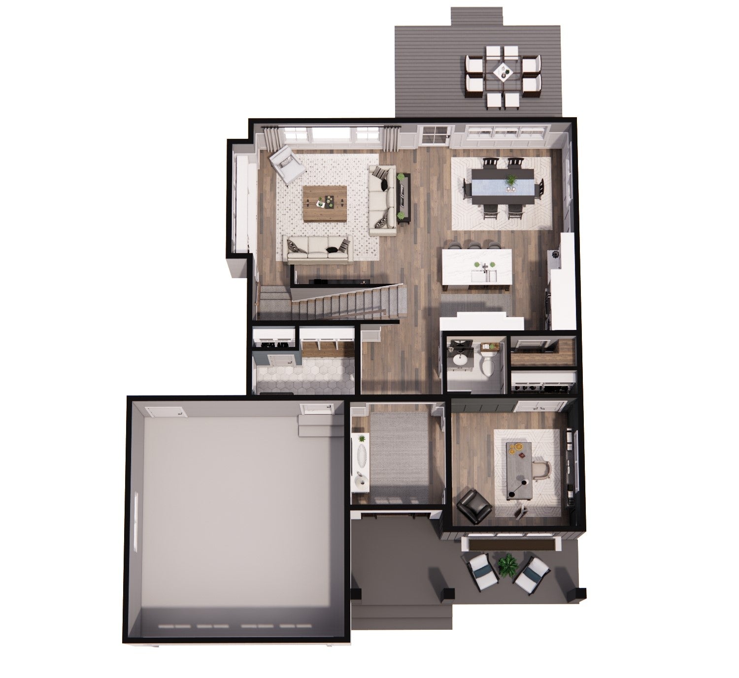 Walkout Basement - This foundation is typically suited for rear-sloping lots and provides storage or living areas. Walkout basements have doors that provide access to the outside.
