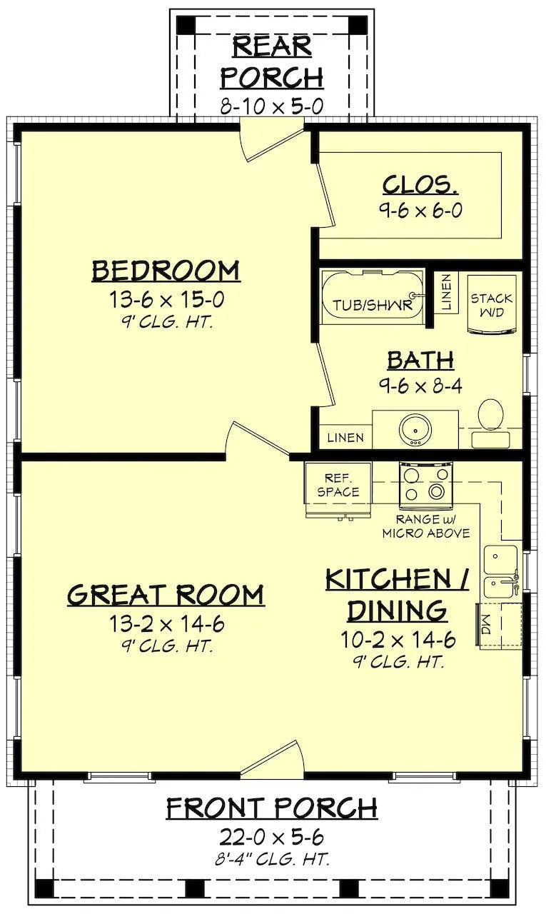 This house plan, covering 732 square feet on the first floor, is an ideal solution for those seeking a compact yet functional living space. The design emphasizes efficiency without sacrificing comfort, featuring a well-appointed owner's suite that provides a private retreat. The open layout seamlessly connects the living area with the kitchen, creating an inviting atmosphere for relaxation and socializing.