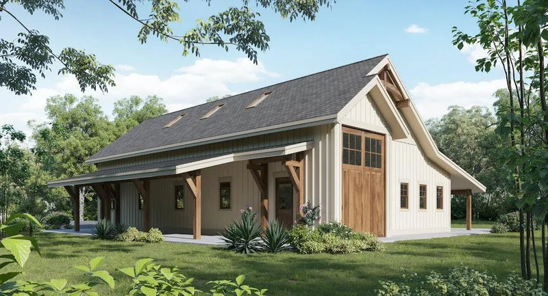 A welcoming covered front porch adds a touch of charm to the exterior, making this garage a versatile addition to your property. Whether for vehicles, recreational equipment, or additional storage, this design meets all your needs with ease and style.