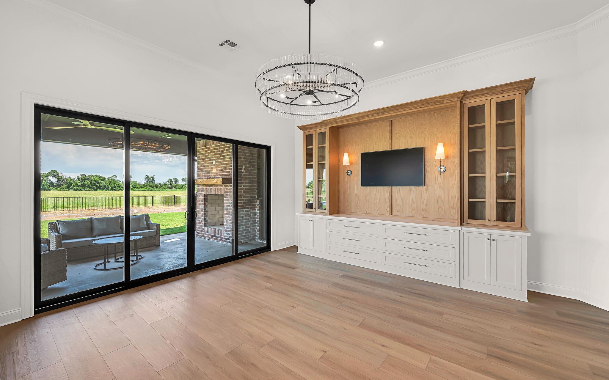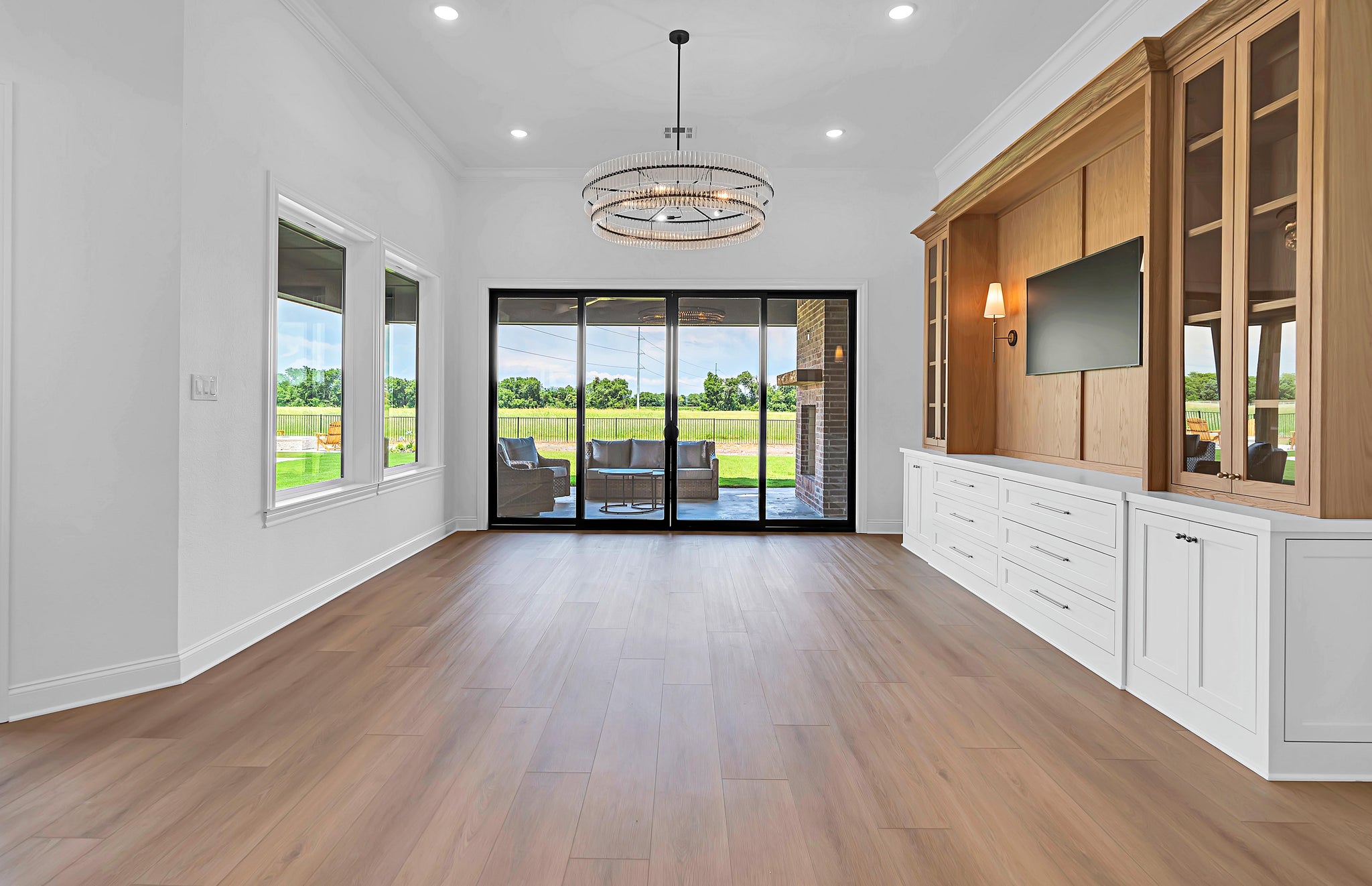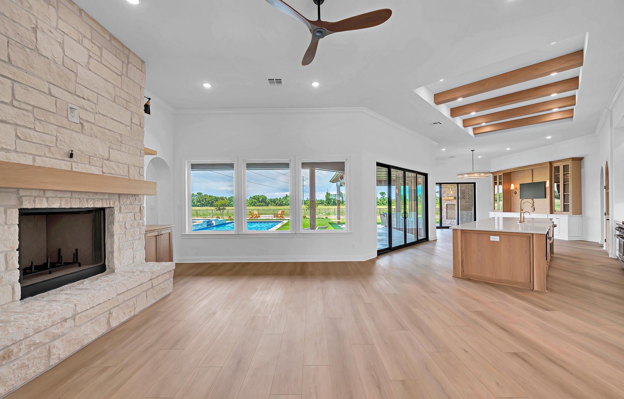 Entertain or unwind on the 761-square-foot rear porch, complete with an outdoor fireplace, and enjoy practical features like a mudroom, a walk-in pantry, and a kitchen island. A dedicated game room and home office offer versatile spaces for work or play. The three-car garage, side-loaded for privacy and spanning 845 square feet, accommodates multiple vehicles and storage needs.
