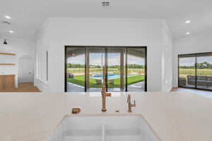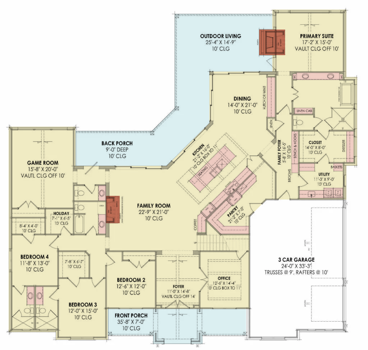 The home’s 89'5" width and 85'10" depth, combined with 10-foot ceilings on the main floor, offer a spacious yet cozy ambiance.