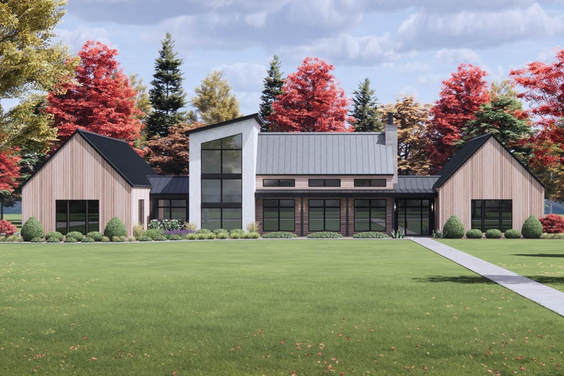 This expansive 4-bedroom, 4.5-bathroom home spans 4,241 sq ft, offering exceptional design and versatility. The first floor features a private master suite with direct laundry access, a spacious Great Room ideal for entertaining, and a game room perfect for recreation. The home includes a walk-in pantry for convenient storage, a mudroom for easy transitions, and a loft area suitable for various uses. With a robust 3-bay garage and expansive front and rear porches, this plan blends function and comfort, making it ideal for both daily living and hosting guests. The home’s unique features, including a split bedroom layout and two distinct roof pitches, ensure both privacy and visual appeal.
