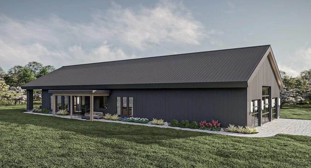 Five printed sets of working drawings shipped to you, plus a digital version in PDF format. This option comes with a license to build ONE home and includes a copyright release for printing unlimited sets of plans and making modifications.