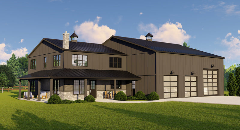 Five printed sets of working drawings shipped to you, plus a digital version in PDF format. This option comes with a license to build ONE home and includes a copyright release for printing unlimited sets of plans and making modifications.