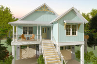 This 1,800 sq ft beach cottage combines coastal charm with modern functionality. The design features a pier foundation, 2x6 wall framing, and truss roof framing with a 10:12 pitch, ensuring durability and efficiency. The home offers three bedrooms, two bathrooms, and a spacious open living area perfect for relaxed coastal living.