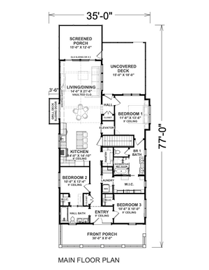 A complete set of working drawings delivered in digital PDF format. This option comes with a license to build ONE home and includes a copyright release for printing unlimited sets of plans and making modifications.