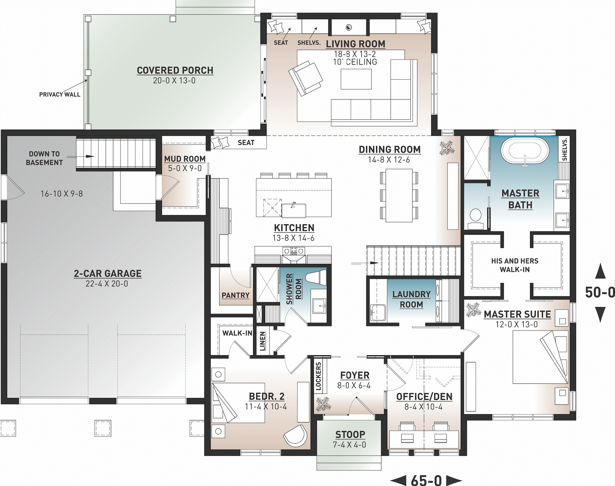 With its 65' width, 50' depth, and 23' building height, this home is framed with sturdy 2x6 walls and rests on a basement foundation for durability and flexibility.