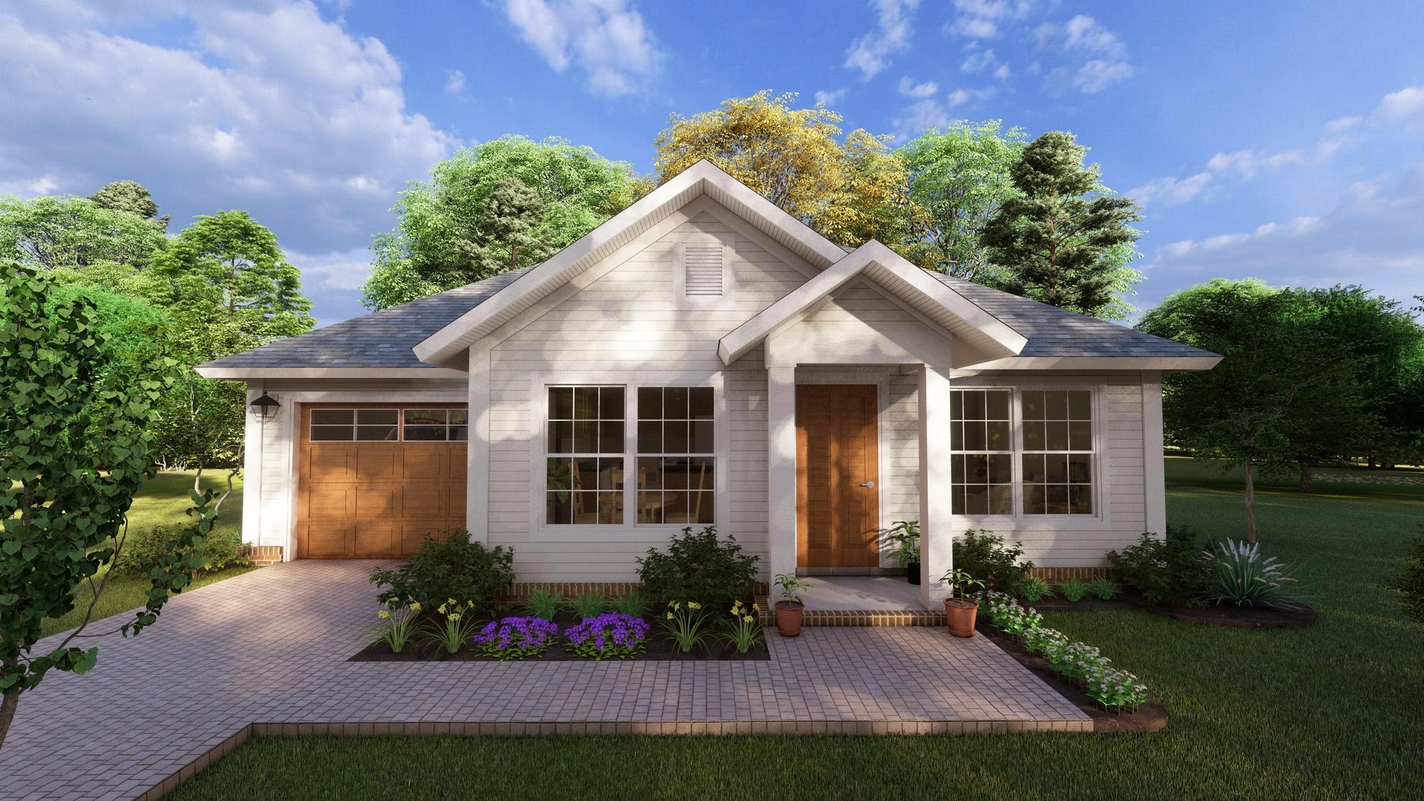 This charming retreat offers a total living area of 788 sq ft, perfect for those seeking a compact yet functional space. The entire living area is situated on the first floor for easy access, featuring two comfortable bedrooms and one bathroom. With a total porch area of 21 sq ft, it's ideal for enjoying the outdoors. The front-loading garage measures 264 sq ft, accommodating one vehicle and adding convenience to the layout.
