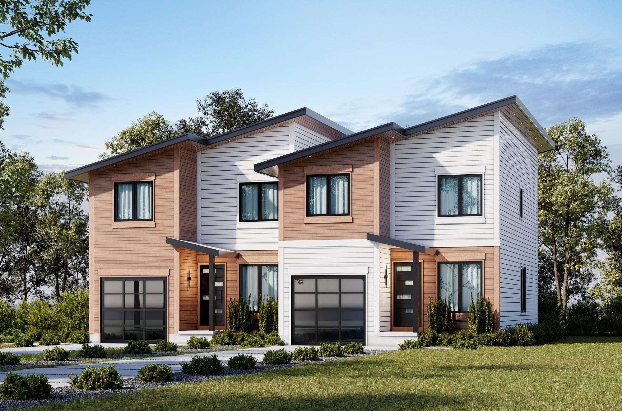 Upstairs, each unit’s second floor includes a thoughtfully placed laundry room, eliminating the hassle of carrying baskets up and down stairs. The owner's suite offers a private bath with a 5-foot shower, and 32-inch-wide passage doors throughout the units provide easy accessibility. With stylish design elements, smart storage solutions, and a functional layout that balances everyday convenience with modern living, this duplex is an excellent option for families, rental properties, or multi-generational living.