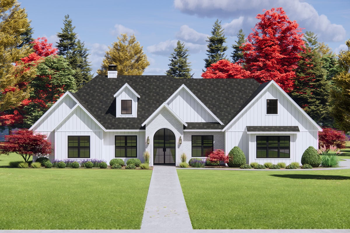 This charming 4-bedroom, 3.5-bathroom home offers 2,854 sq ft of well-designed living space. The first floor boasts a luxurious master suite with convenient laundry access, a formal dining room, and a versatile home office/study. The layout features a split bedroom design for added privacy, and the Jack and Jill bathroom serves two of the bedrooms. The spacious kitchen includes a walk-in pantry, and the mudroom provides easy access for daily living. The home’s 2-car side-entry garage and ample front and rear porch spaces enhance both functionality and curb appeal. A stylish roof with dual pitches adds an eye-catching finishing touch.