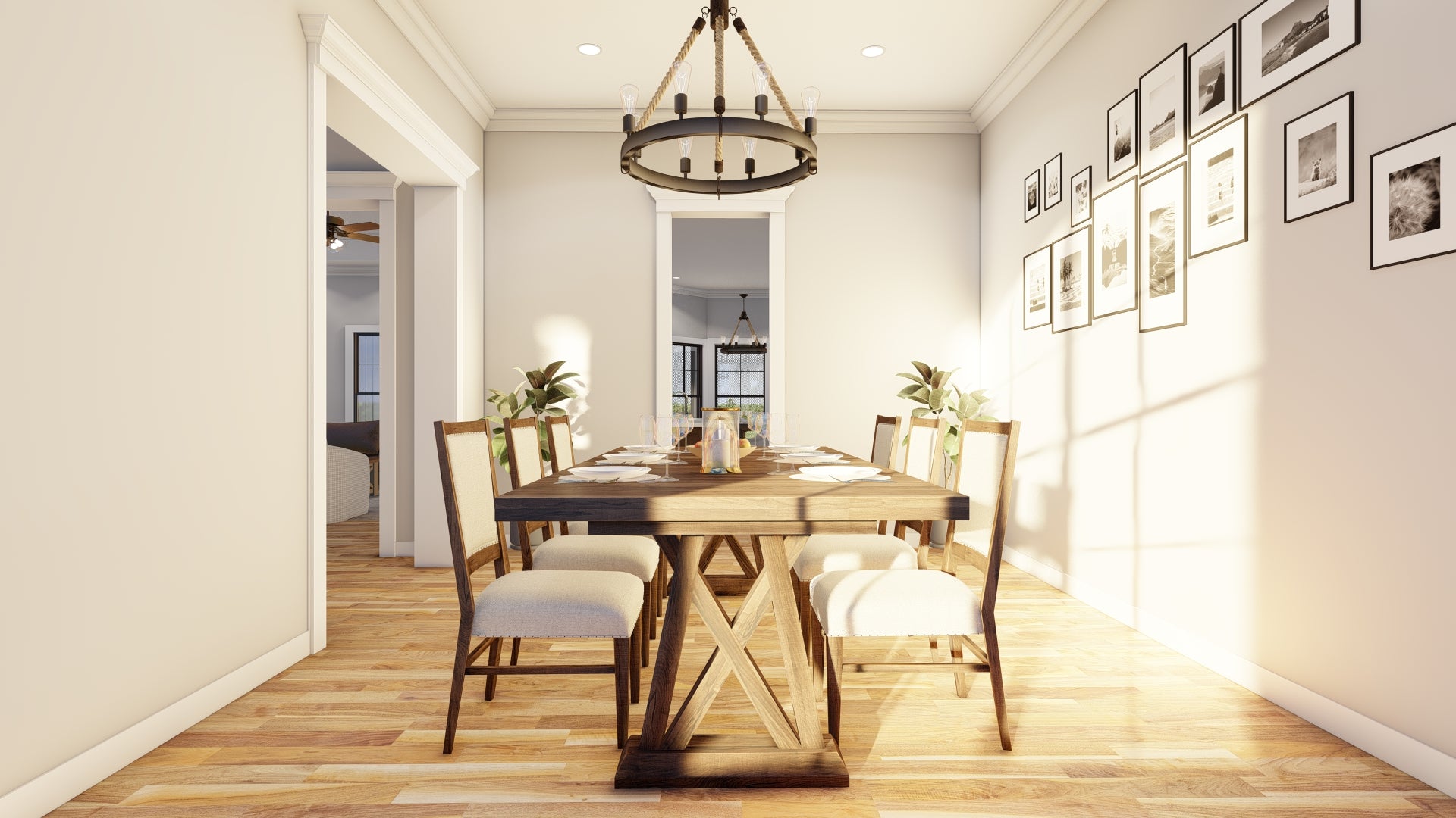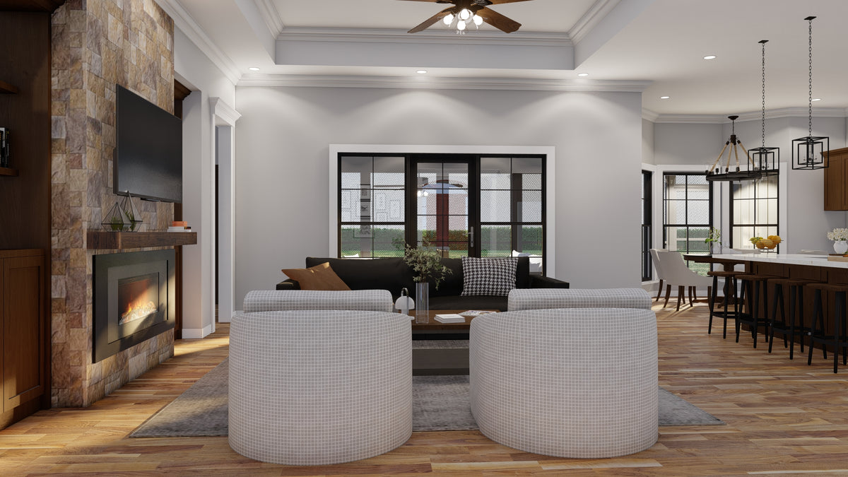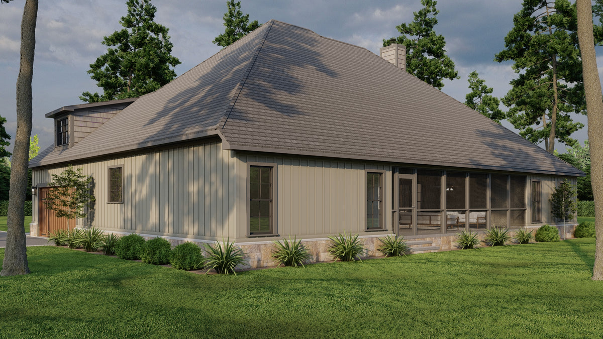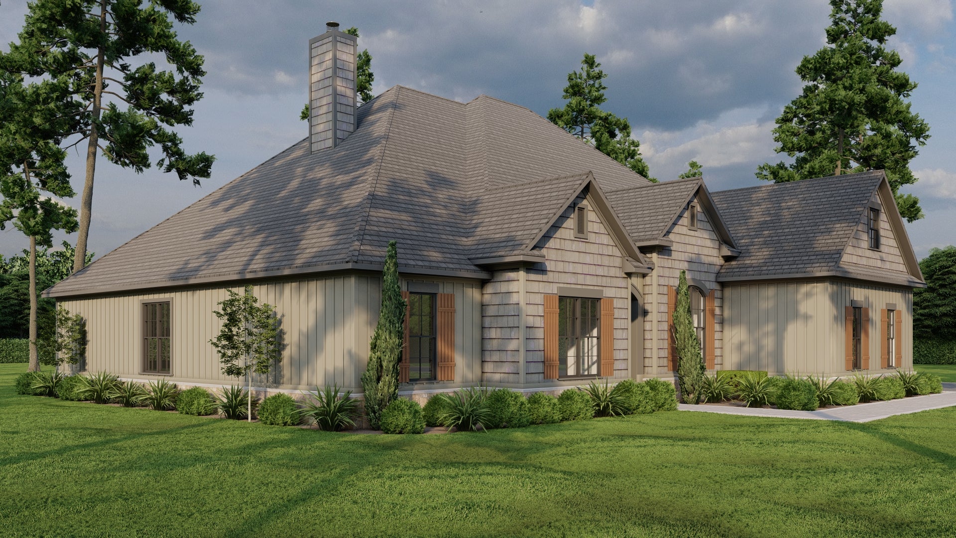 The home’s charming curb appeal is enhanced by a covered front porch, while the covered back porch provides the perfect setting for outdoor relaxation or weekend barbecues. Additional highlights include a mudroom for everyday convenience, a bonus room for a home office or game room, and plenty of storage throughout. With a side-load 2-car garage and 387 sq ft of bonus space upstairs, this plan is as flexible as it is beautiful—perfect for growing families or those who love to host.