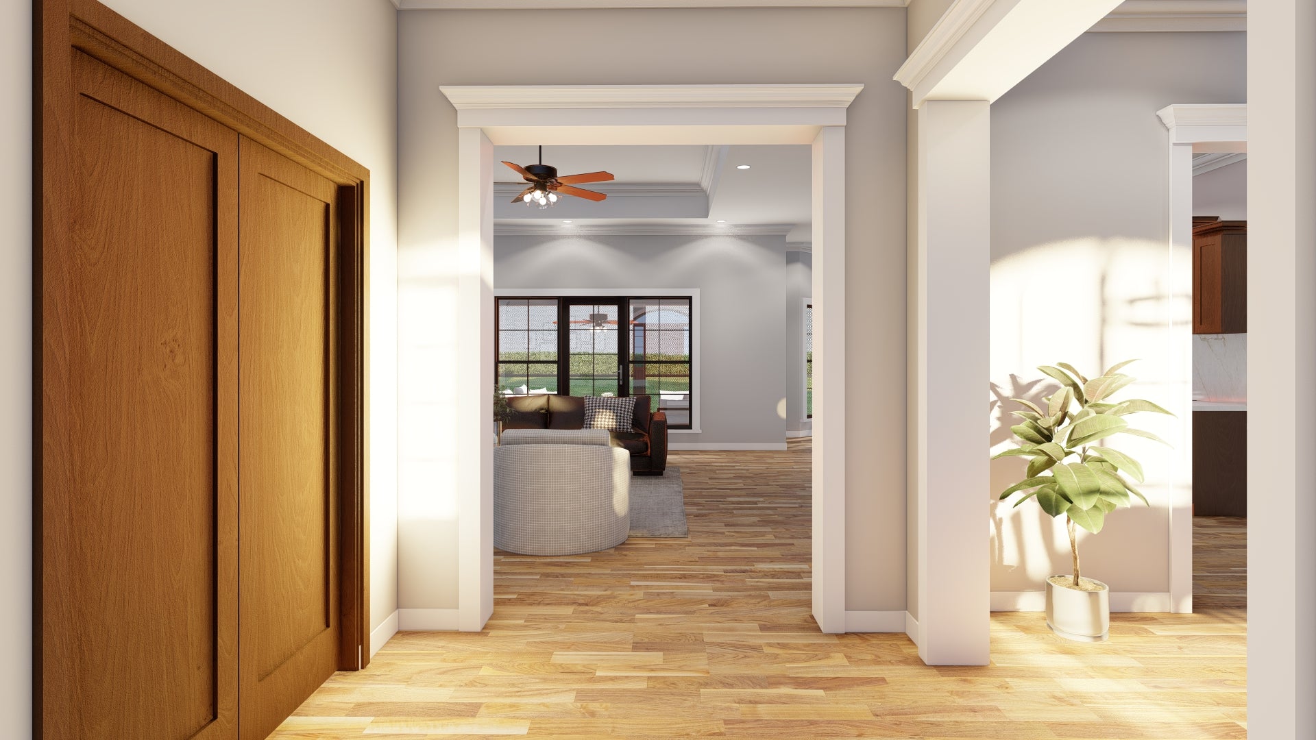 This 2,646 sq ft European-inspired traditional home offers comfort, style, and functionality all on one thoughtfully designed level. Featuring 4 bedrooms, 3.5 bathrooms, and a smart split-bedroom layout, this plan delivers the perfect balance of privacy and gathering spaces. The spacious great room with fireplace anchors the open-concept layout, flowing effortlessly into the kitchen with a central island and the formal dining room—ideal for entertaining. A Jack and Jill bath connects two secondary bedrooms, while the luxurious first-floor master suite offers a private retreat complete with a large walk-in closet and direct laundry access.
