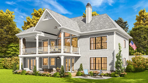 Convenience is key in this design, with a first-floor laundry room for easy access. The covered front and back porches provide inviting outdoor living spaces, perfect for relaxation or entertaining. The home’s layout emphasizes an open flow while maintaining privacy in the master suite.