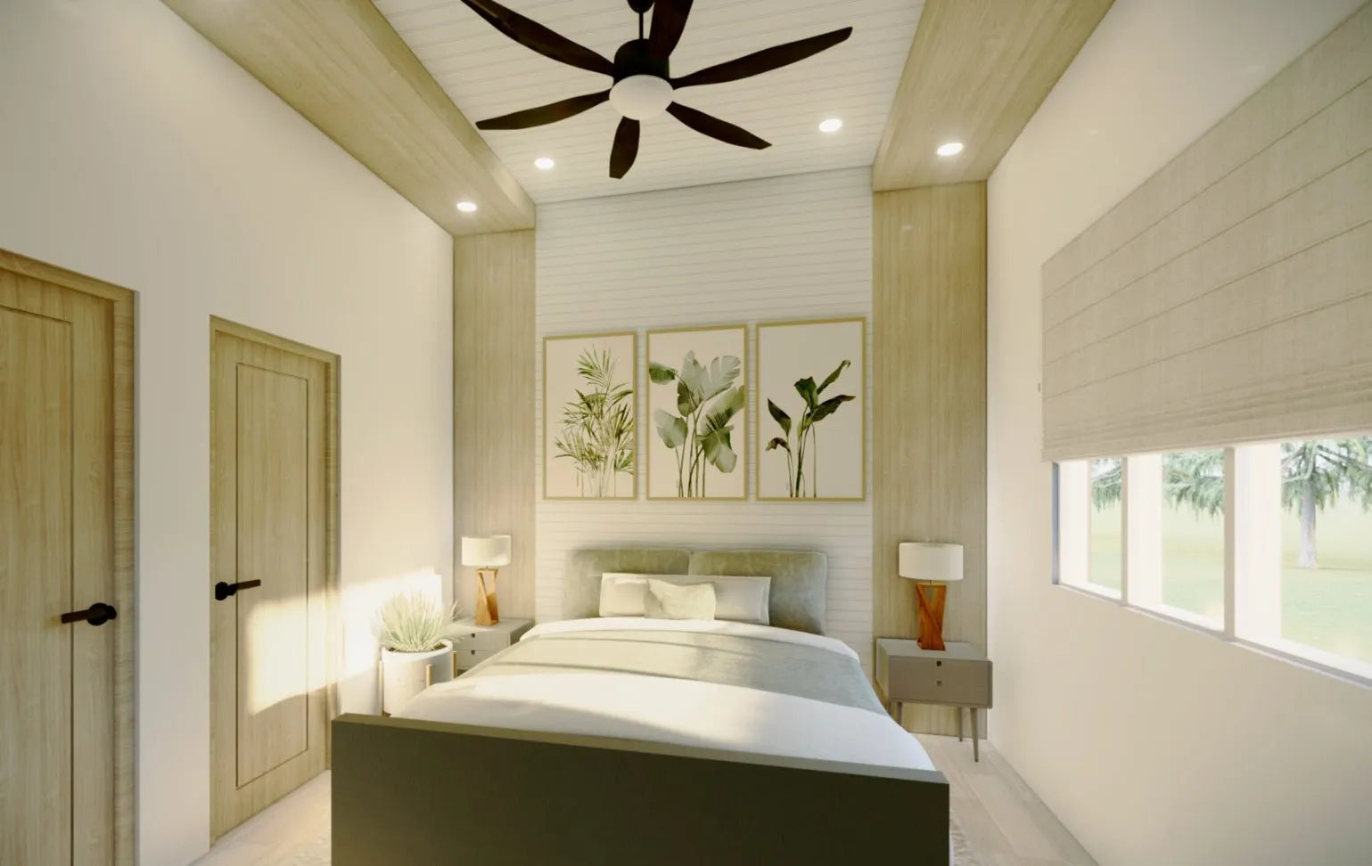 A side-load 2-bay garage offers ample parking and storage space. The slab foundation ensures simple construction, while the 2x4 wall framing provides durability. The 10-foot ceiling height on the first floor enhances the home’s spacious feel, with 9-foot ceilings on the second floor for added openness.