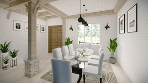 • Detailed Floor Plans – Well-dimensioned plans showing the placement of walls, room dimensions, doors, windows, stairways, and other key features for each floor. These plans illustrate floor layouts, window/door sizes, and reference keys for cross-section details. Engineered floor joists and ceiling joists are not included in some plans. Local engineers or manufacturers can provide services for local geographic conditions. Important changes in floor, ceiling, and roof heights, or the relationship of one level to another, are clearly indicated.