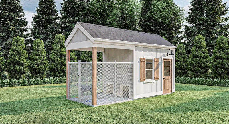 This charming dog house plan features a total living area of 96 square feet, designed specifically for your beloved pet. The single-story layout provides ample space with a width of 8 feet and a depth of 20 feet, ensuring a comfortable environment. Built on a sturdy slab foundation, this dog house utilizes 2x4 wall framing for durability. With a ceiling height of 9 feet, it allows for plenty of headroom, making it a cozy retreat for your dog. This thoughtfully designed space will keep your pet safe and comfortable in any weather.