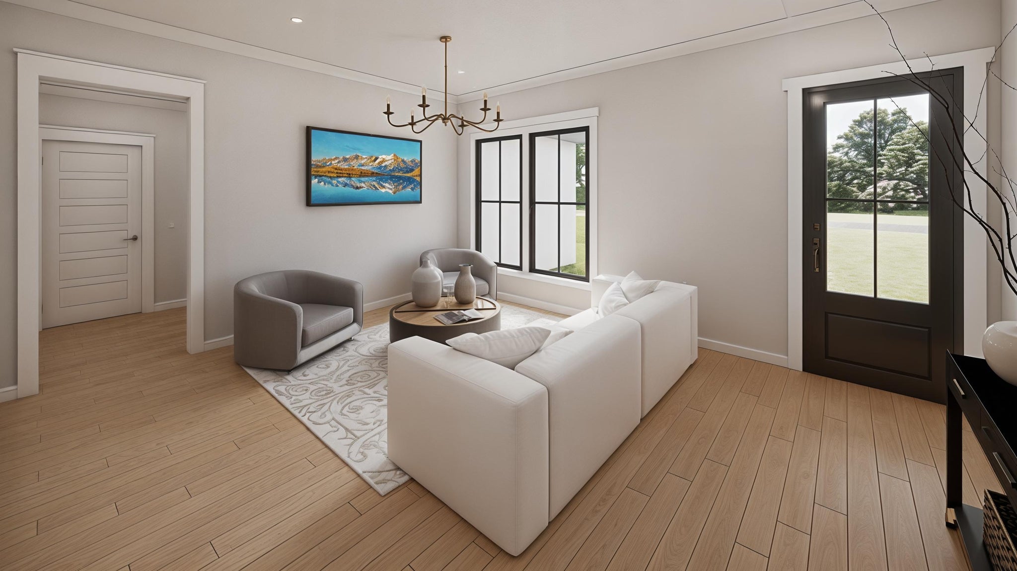 Step inside this inviting modern farmhouse, where classic design meets everyday functionality. The main floor features a spacious great room, a gourmet kitchen with an island and eating bar, and a master suite for ultimate convenience. Covered front and back porches provide ideal spaces for relaxing outdoors, while the mudroom and walk-in pantry keep everything organized.
