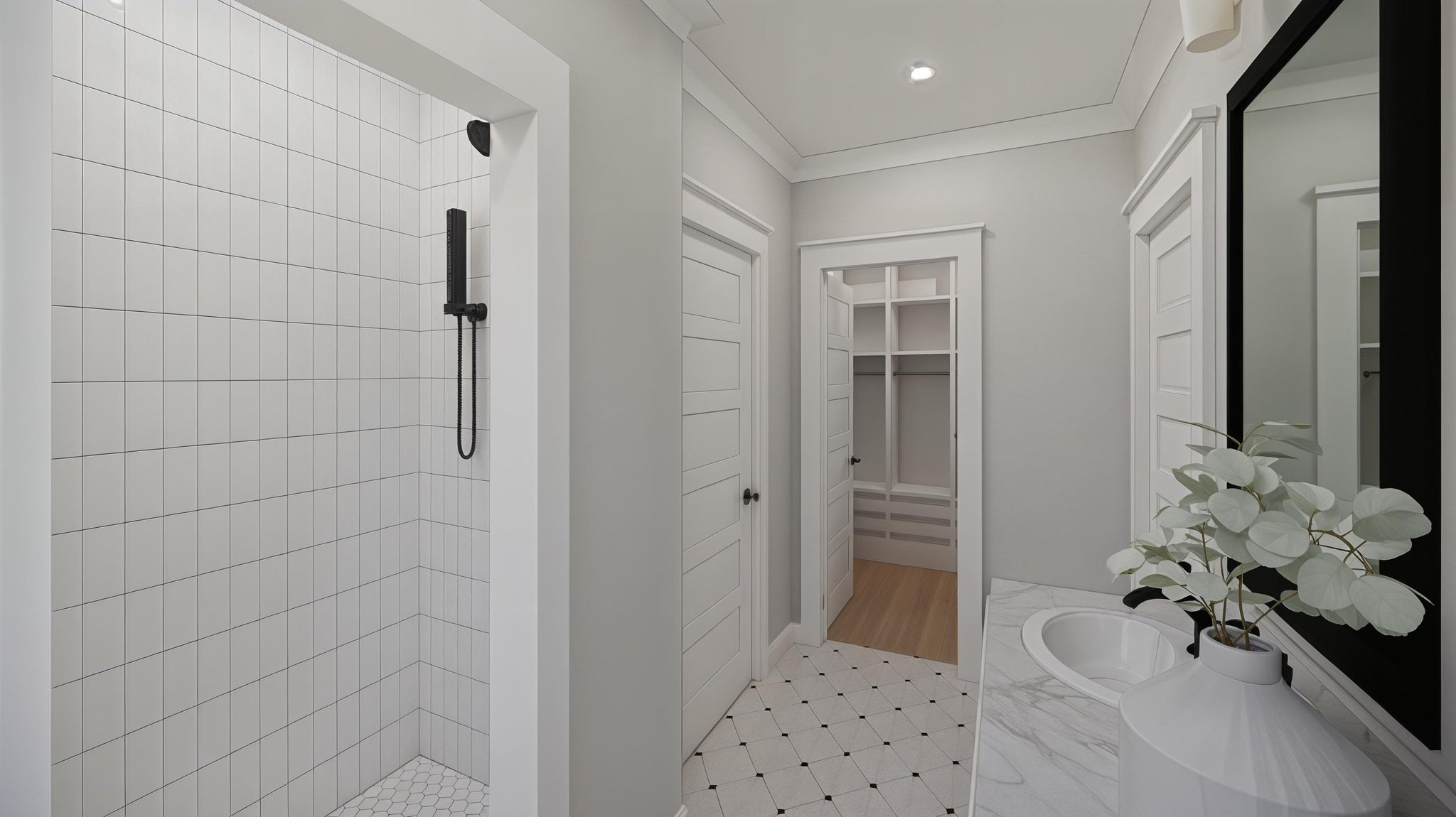 Two additional bedrooms and a full bathroom offer comfortable private spaces for family or guests. Vaulted ceilings and thoughtfully designed walk-in closets add a sense of openness and style. This single-story design perfectly balances modern amenities with farmhouse charm, making it an ideal home for comfortable, elegant living.