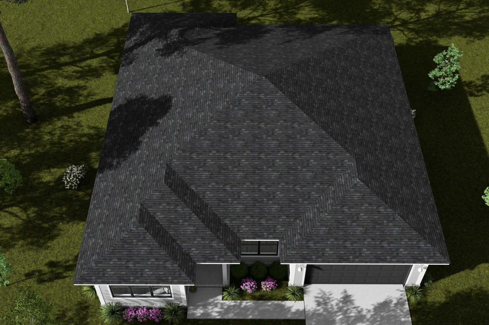 Built on a slab foundation, the home measures 49' wide by 60' deep, with a building height of 18’7’’. The first-floor ceiling height of 10’ enhances the open, airy feel throughout the main living areas. The roof pitch of 4:12 complements the modern exterior design while providing efficient drainage. With 793 sq ft of unheated under-roof areas, including porches and garage overhangs, the total structure measures 2,647 sq ft, combining style and practicality.