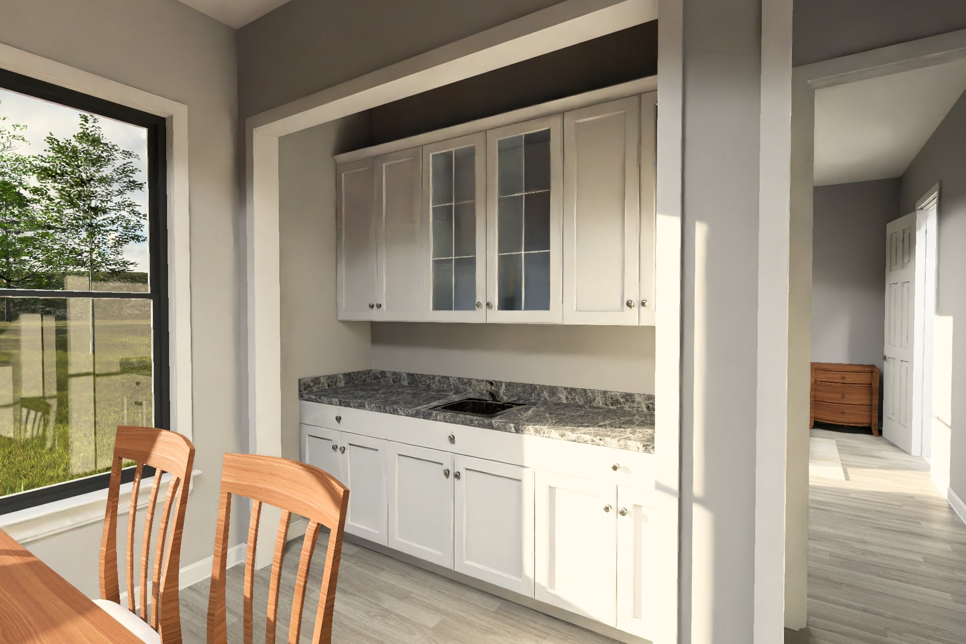 The open floor plan connects the great room, kitchen, and formal dining area into a seamless living space, perfect for both family gatherings and entertaining. The kitchen island provides additional prep space and doubles as a casual eating bar, while the walk-in pantry offers ample storage for groceries and kitchen essentials. Adjacent to the kitchen, the first-floor laundry and mudroom provide convenience and help maintain organization.