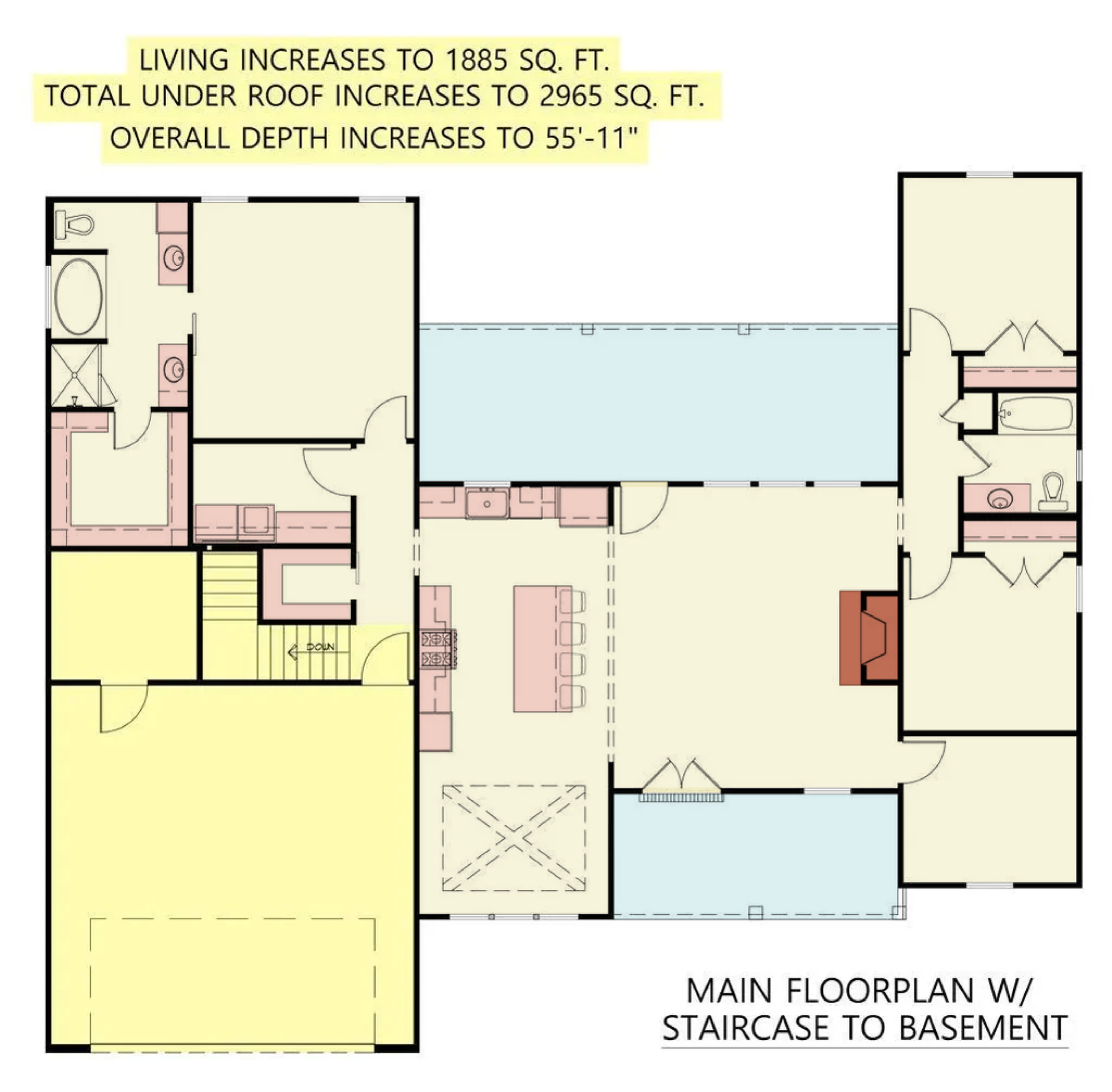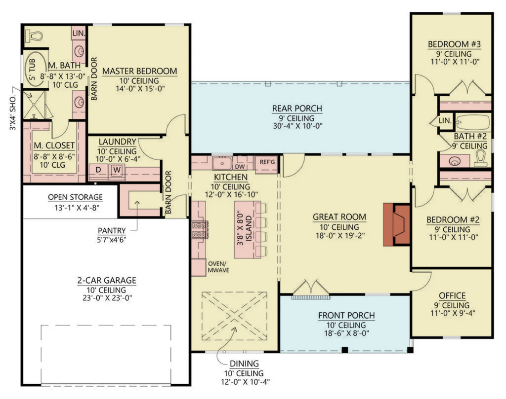 Enjoy the outdoors with a total porch area of 448 sq ft, ideal for relaxing or entertaining. The home also includes 61 sq ft of storage for all your organizational needs. The front-loading garage (609 sq ft) with two bays provides convenient access and ample parking.