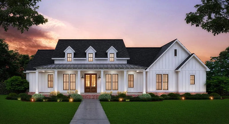 The Myrtle Beach modern farmhouse plan boasts an open floor plan with huge island kitchen and great room entertainment areas with access to a butler's pantry. This country floor plan offers a huge master suite with access to the laundry room plus a spacious rear porch with outdoor grilling area.