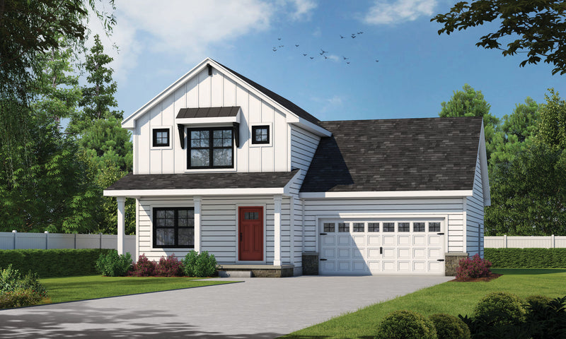 Upstairs, the master suite offers a peaceful retreat with a private bath and spacious walk-in closet. Two additional bedrooms are clustered together, sharing a full bath, making it ideal for families with children or guests. A front-load two-car garage and an unfinished basement provide extra storage and future growth potential, all wrapped in a charming, balanced 42' x 42' footprint. This home blends modern needs with cozy appeal, perfect for today's homeowners.