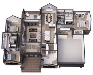 A complete set of working drawings delivered in digital PDF format. This option comes with a license to build ONE home and includes a copyright release for printing unlimited sets of plans and making modifications.
