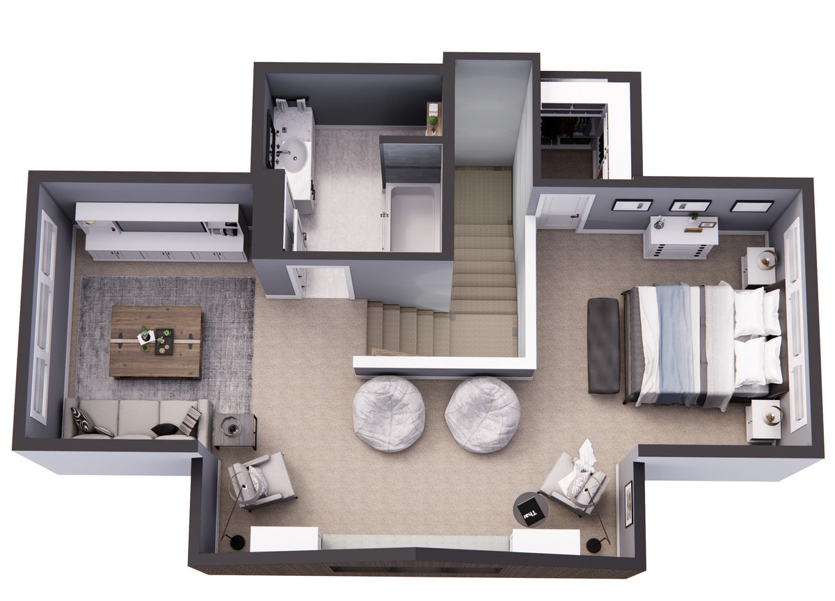 Walkout Basement - This foundation is typically suited for rear-sloping lots and provides storage or living areas. Walkout basements have doors that provide access to the outside.