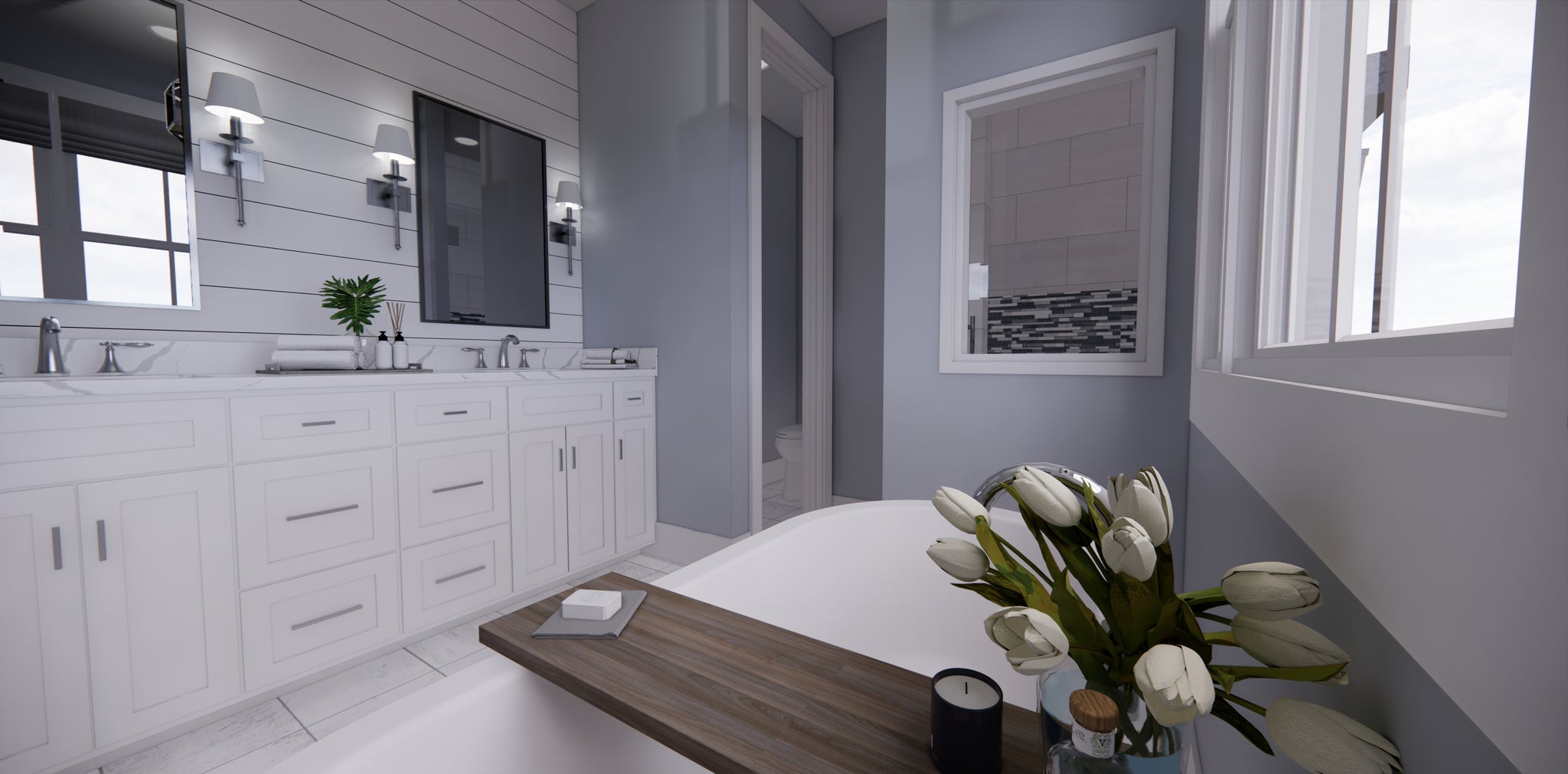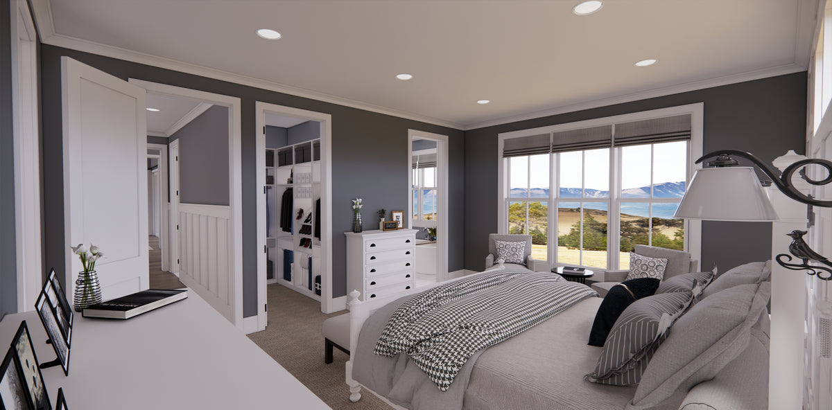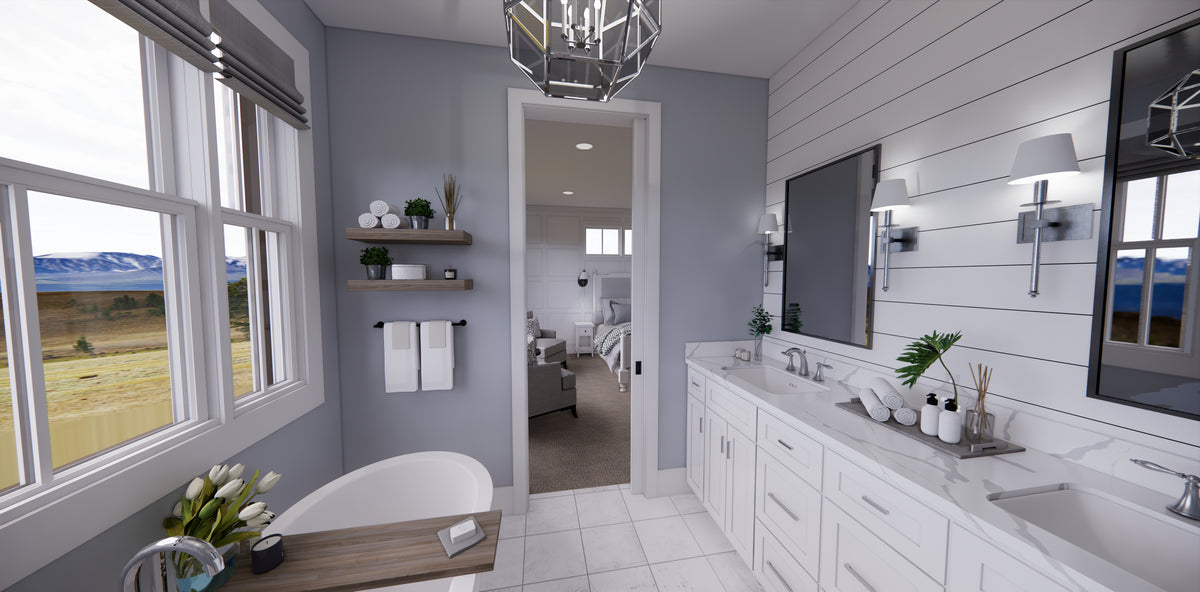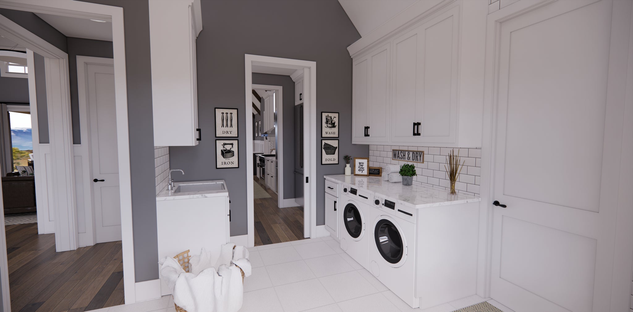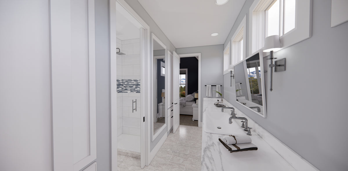 The luxurious first-floor master suite offers privacy and comfort with dual walk-in closets, triple windows for natural light, and a spa-like bath complete with soaking tub and L-shaped shower. Two additional vaulted-ceiling bedrooms share a Jack and Jill bath, each with its own walk-in closet. Practical touches like a mudroom with bench and storage, first-floor laundry with a large wash sink, and an optional 623 sq ft bonus suite over the garage ensure there's room for everyone—and every need. This beautifully detailed home blends elegance, comfort, and everyday convenience in one perfect package.