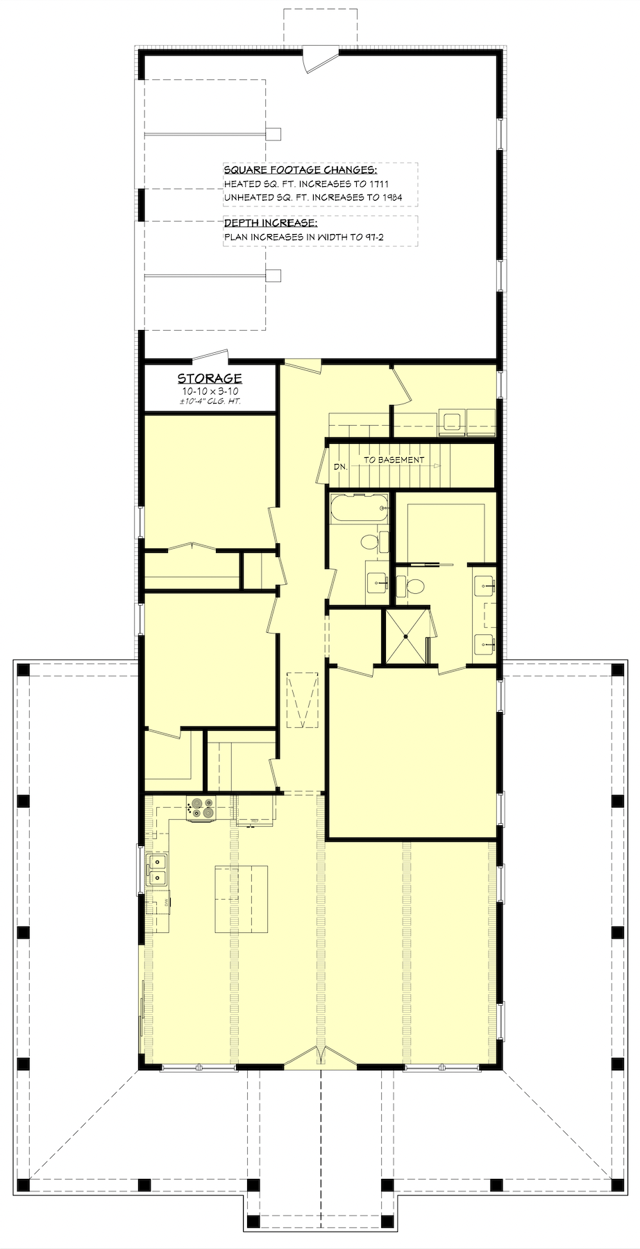 One of the standout features of this design is the 1,170-square-foot wraparound porch, offering ample outdoor living space for relaxation and gatherings. With 10-foot ceilings, a slab or crawl foundation, and thoughtful design elements throughout, this home offers a perfect blend of style, comfort, and practicality.
