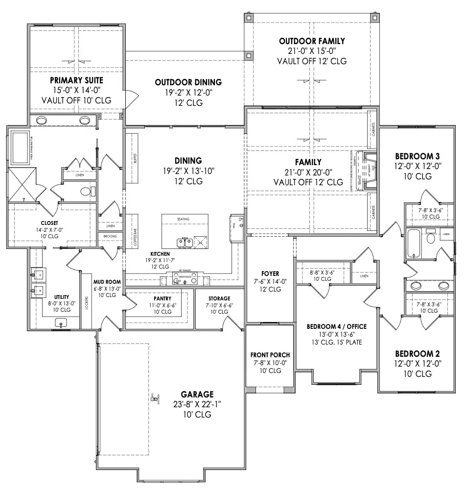 Our foundation plans have been designed for universal conditions and may need to be adjusted to fit your specific site conditions. The foundation should be modified by a local structural engineer to comply with soil testing laboratory findings and local building requirements.