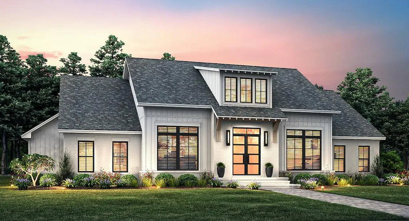 A thoughtfully designed home offers a total living area of 2,780 sq ft, with the entire first floor providing generous space for comfortable living. A spacious bonus room of 620 sq ft adds versatility, perfect for a playroom, office, or entertainment area. The front porch, measuring 30 sq ft, and the rear porch, at 310 sq ft, create welcoming outdoor spaces for relaxation. The side-load garage accommodates three vehicles with a total area of 960 sq ft, ensuring ample storage. The layout includes four bedrooms, three full bathrooms, and one half bathroom, making it ideal for families. Built on a sturdy slab/crawl foundation, the home features 2x4 wall framing and stick roof framing, with an attractive roof pitch of 8:12 and 3:12. With a width of 76 feet and a depth of 85 feet 4 inches, the building reaches a height of 27 feet. Both the first and second floors offer a ceiling height of 9 feet, contributing to a bright and open atmosphere throughout the home.
